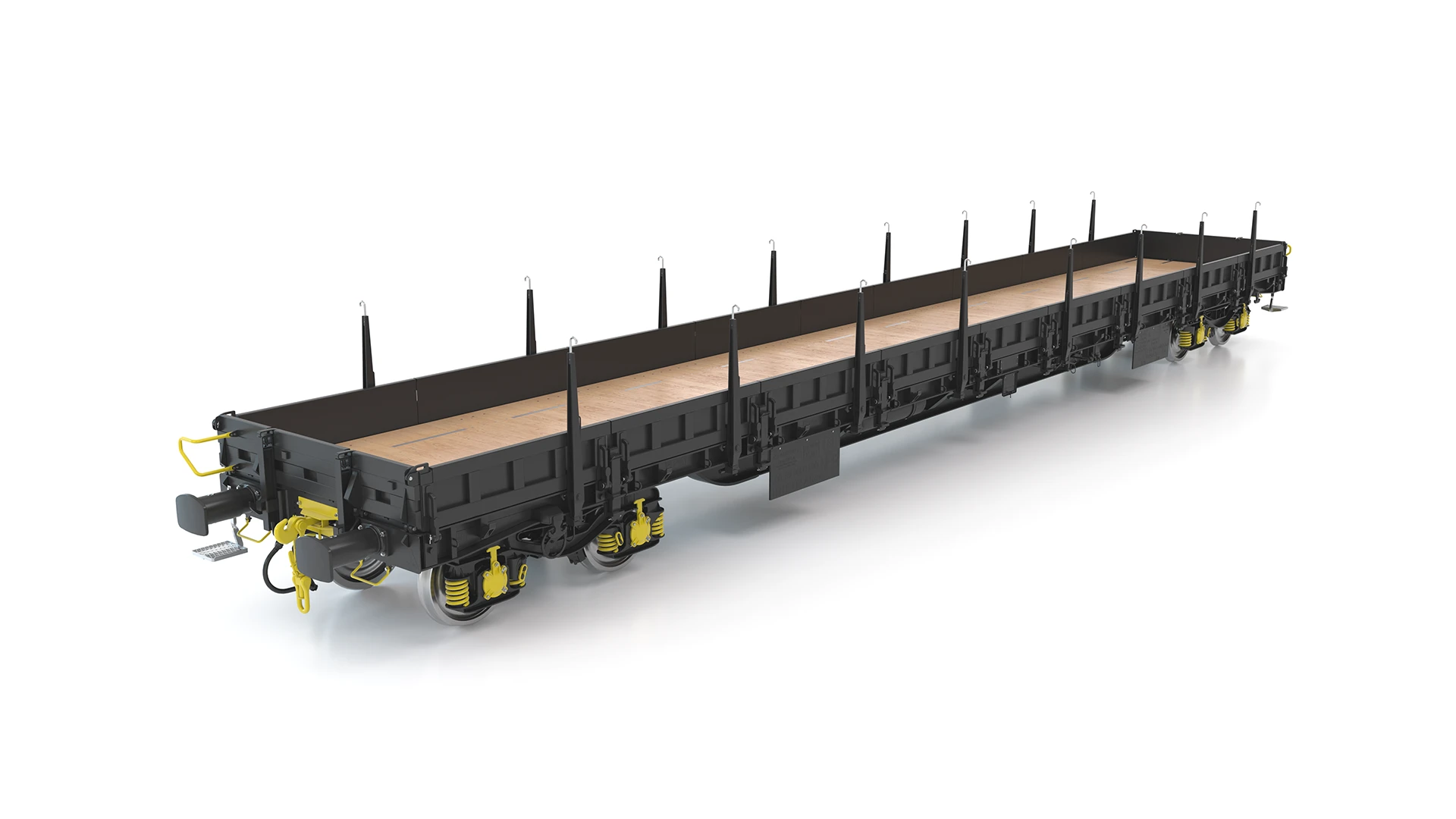 Moderne Containertragwagen für 40' bis 90' Container, vollständig TSI-WAG und UIC 596-6 zertifiziert für den europäischen Markt.