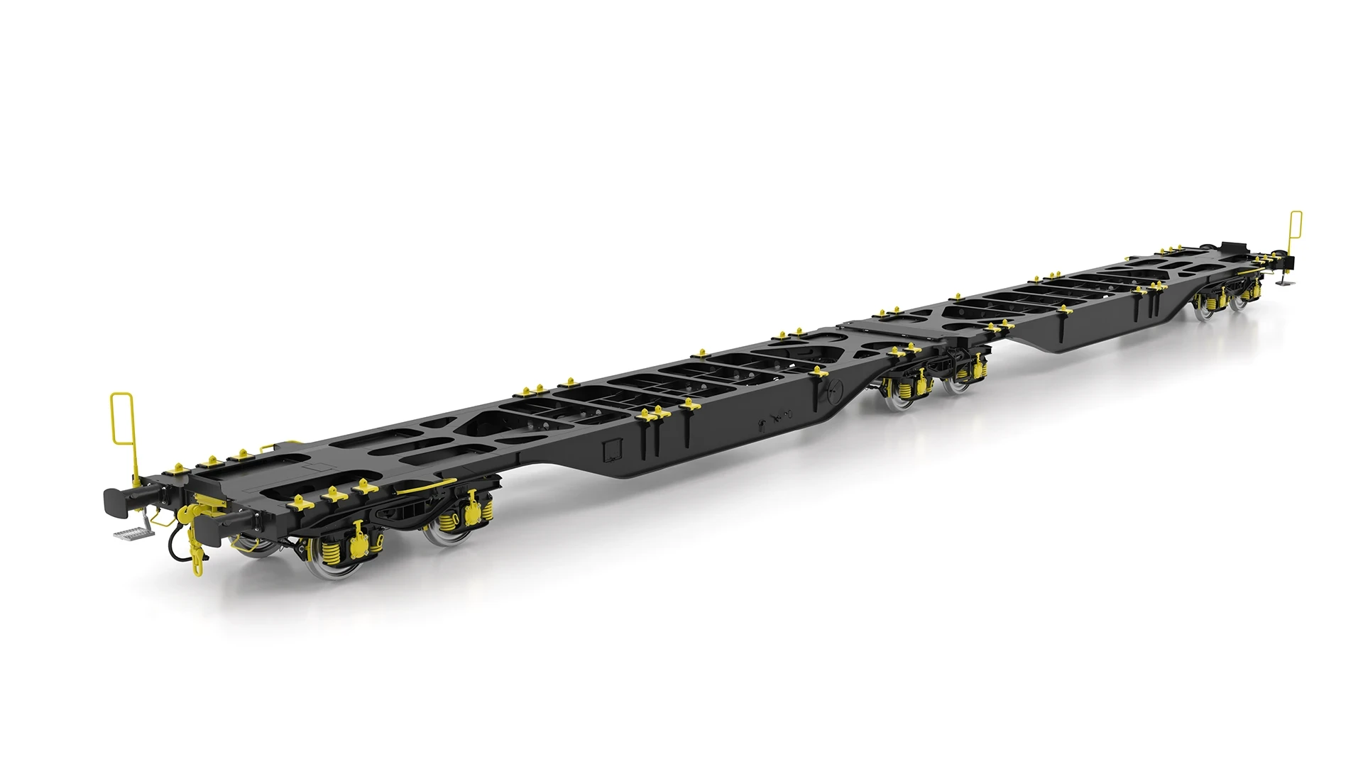 TSI-zugelassener 4-Achs-Waggon für intermodalen Containertransport. Kompatibel mit 20', 30' oder 40' Containern und Wechselbrücken. Geeignet für SS (120 km/h) Bremsregime.